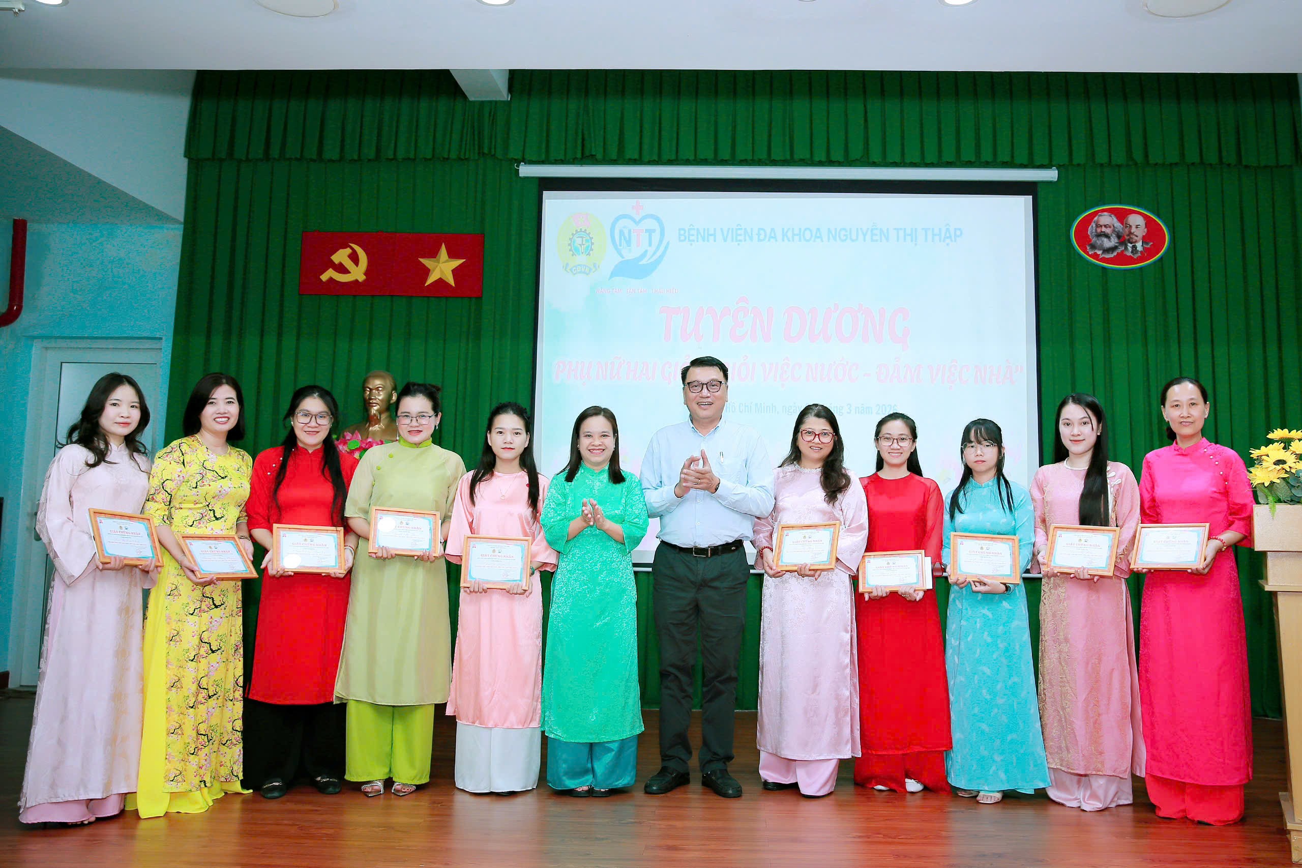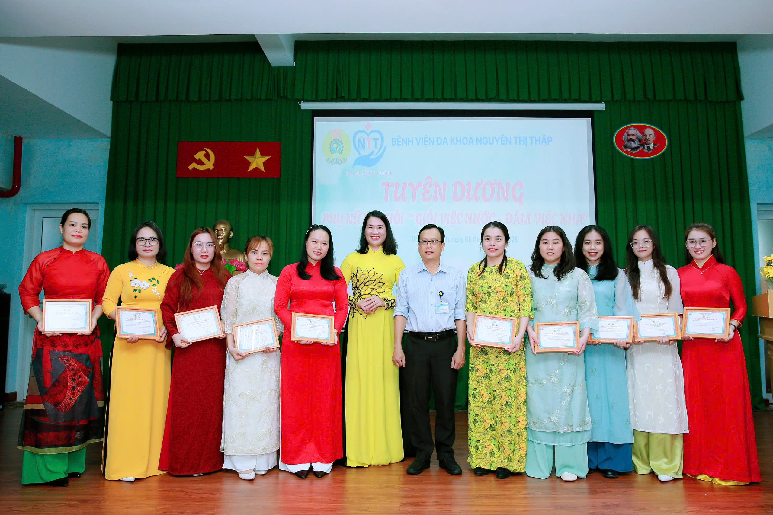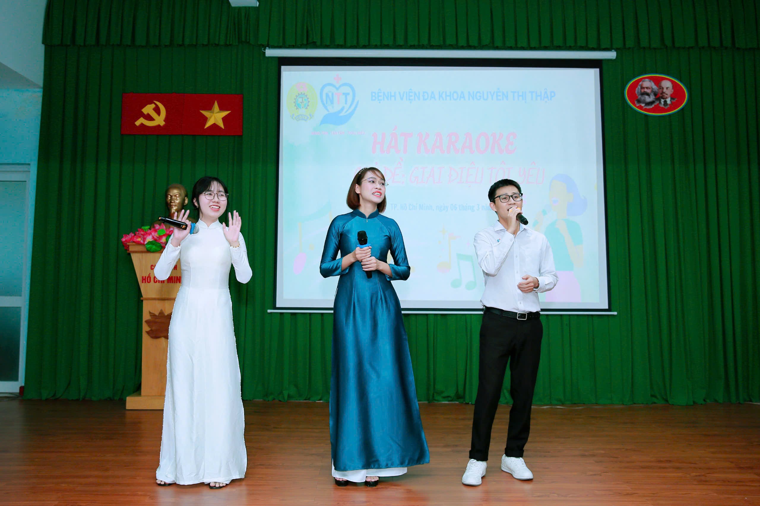 ???? Chương trình cũng trở nên sôi nổi, gắn kết qua hoạt động giao lưu Karaoke “Giai điệu tôi yêu” với sự tham gia của 12 Tổ Công đoàn, mang đến nhiều cung bậc cảm xúc, góp phần tạo nên không khí vui tươi, đoàn kết và đầy ấm áp trong đại gia đình Bệnh viện. Dịp này, BCH Công đoàn đã tuyên dương các cá nhân đạt danh hiệu “Giỏi việc nước – Đảm việc nhà”, những tấm gương phụ nữ tận tâm trong công việc, trách nhiệm với gia đình.