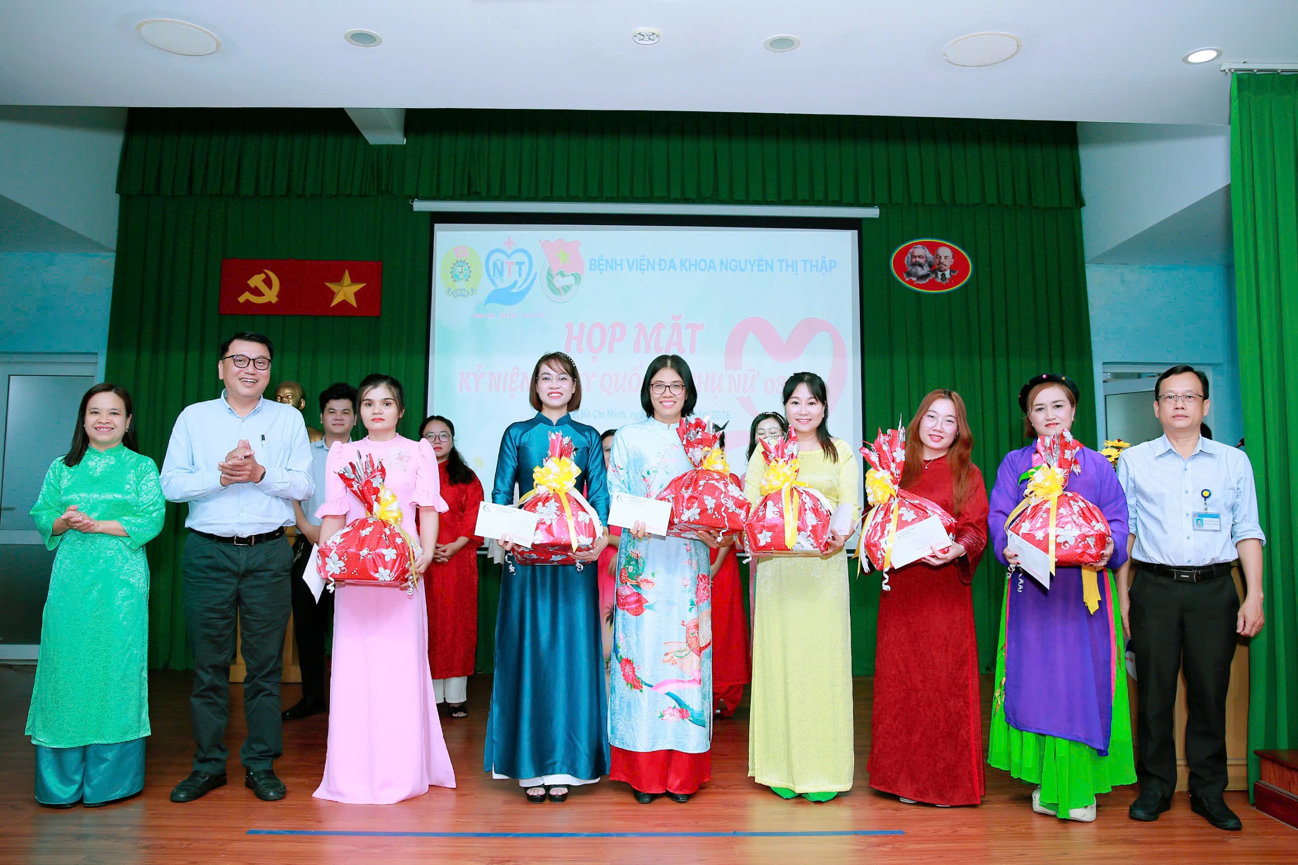 ???? Được sự quan tâm, chỉ đạo của Đảng ủy – Ban Giám đốc Bệnh viện cùng sự phối hợp của BCH Công đoàn và Đoàn Thanh niên, chiều ngày 06/3/2026, Bệnh viện Đa khoa Nguyễn Thị Thập đã tổ chức họp mặt kỷ niệm 116 năm Ngày Quốc tế Phụ nữ (08/3/1910 – 08/3/2026) và 1986 năm cuộc khởi nghĩa Hai Bà Trưng trong không khí ấm áp, trang trọng và đầy ý nghĩa.
