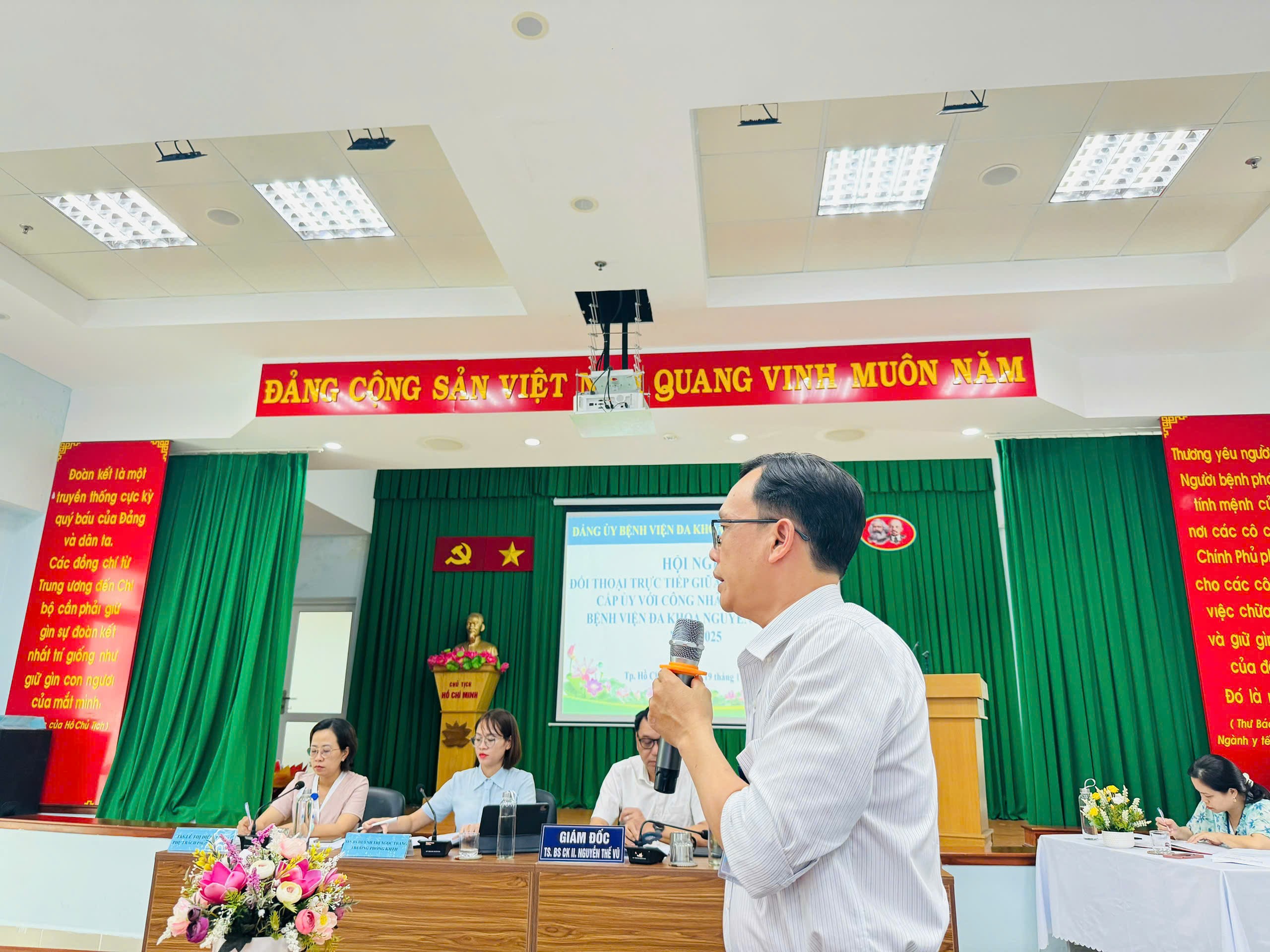 Tại buổi đối thoại, người lao động thẳng thắn phát biểu ý kiến, đề xuất các kiến nghị về môi trường làm việc, chế độ, chính sách và giải pháp nâng cao chất lượng chuyên môn, phục vụ người bệnh. Các ý kiến được đồng chí Bí thư Đảng ủy trực tiếp trả lời hoặc phân công các lãnh đạo bộ phận giải đáp, đảm bảo giải quyết đúng thẩm quyền, rõ ràng và minh bạch.