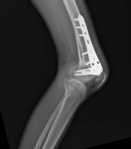 Hình ảnh Xquang sau phẫu thuật 1 năm: xương đã lành hoàn toàn, bệnh nhân có thể sinh hoạt và làm việc bình thường